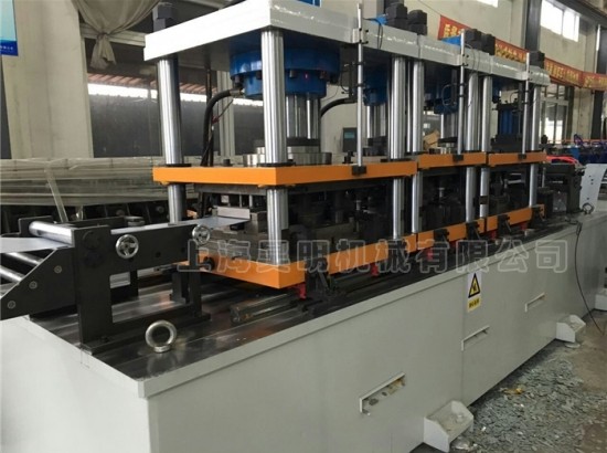 重型多工位快换生产线是包含上料喷丸烤漆冷弯成型生产线跟踪切断堆垛的全自动化生产线,由于需要生产好几种产品。而前段于后段工序不需要重复投资,就把几条冷弯成型生产线并列,采用电器控制在导轨上往返移动,更换规格,以达到更节省成本,又可以加速更换不同产品的目的。